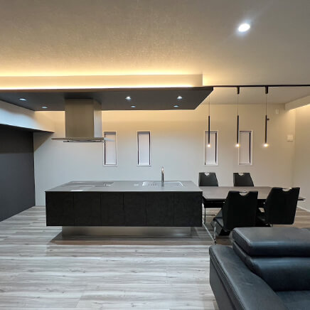 造作工事でアレンジし、照明設備を隠したことで間接的に壁や天井を照らしています。