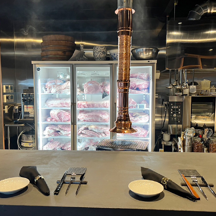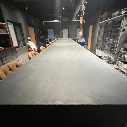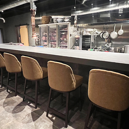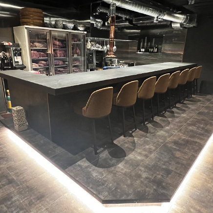 見慣れた木質カウンターを一新し、鉄のイメージに仕上げることで高級感を演出しました。